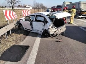 W sobotę (08.03.2025) około godz. 9:00 w Radzyniu Podlaskim na DK 19 doszło do zderzenia samochodu osobowego z ciężarowym. Jedna osoba poszkodowana. Zdjęcia: Komenda Powiatowa Państwowej Straży Pożarnej w Radzyniu Podlaskim