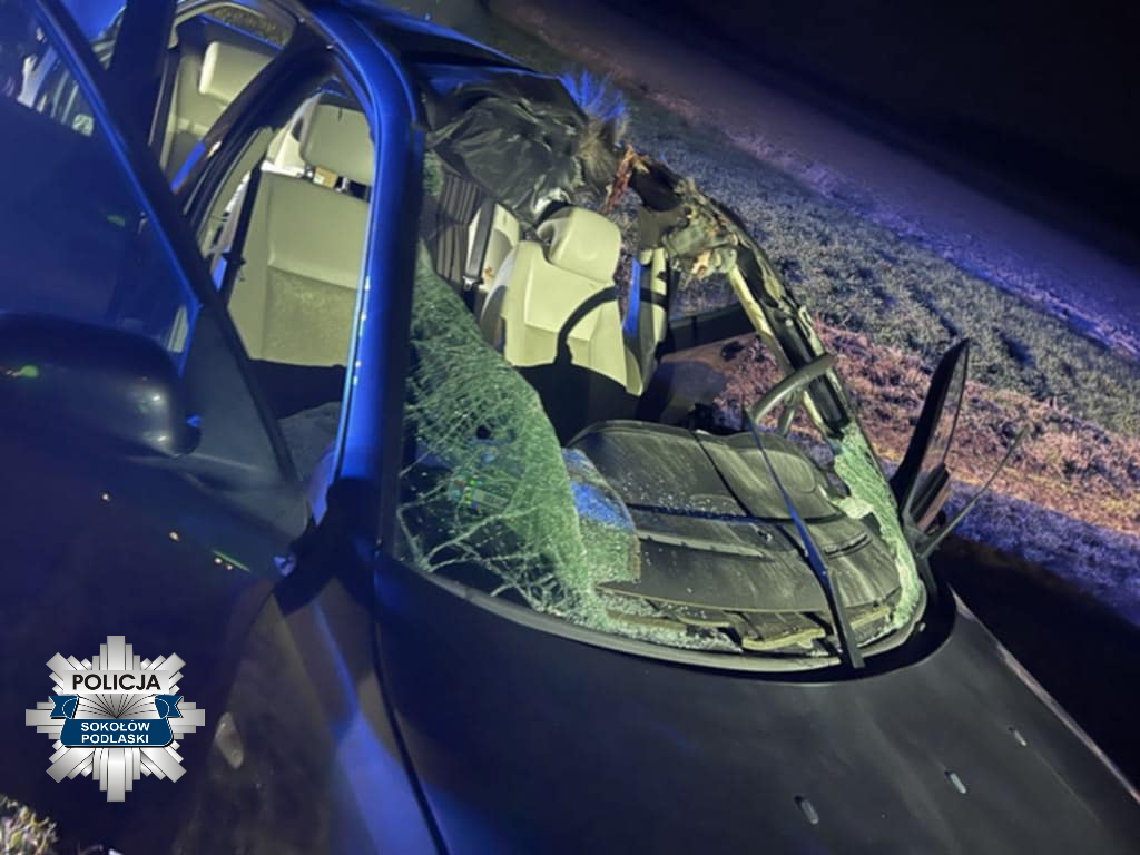 Do kolejnego zdarzenia z łosiem doszło na terenie powiatu sokołowskiego. Uwaga kierowcy na dziką zwierzynę w trakcie podróży w pobliżu pól i lasów!