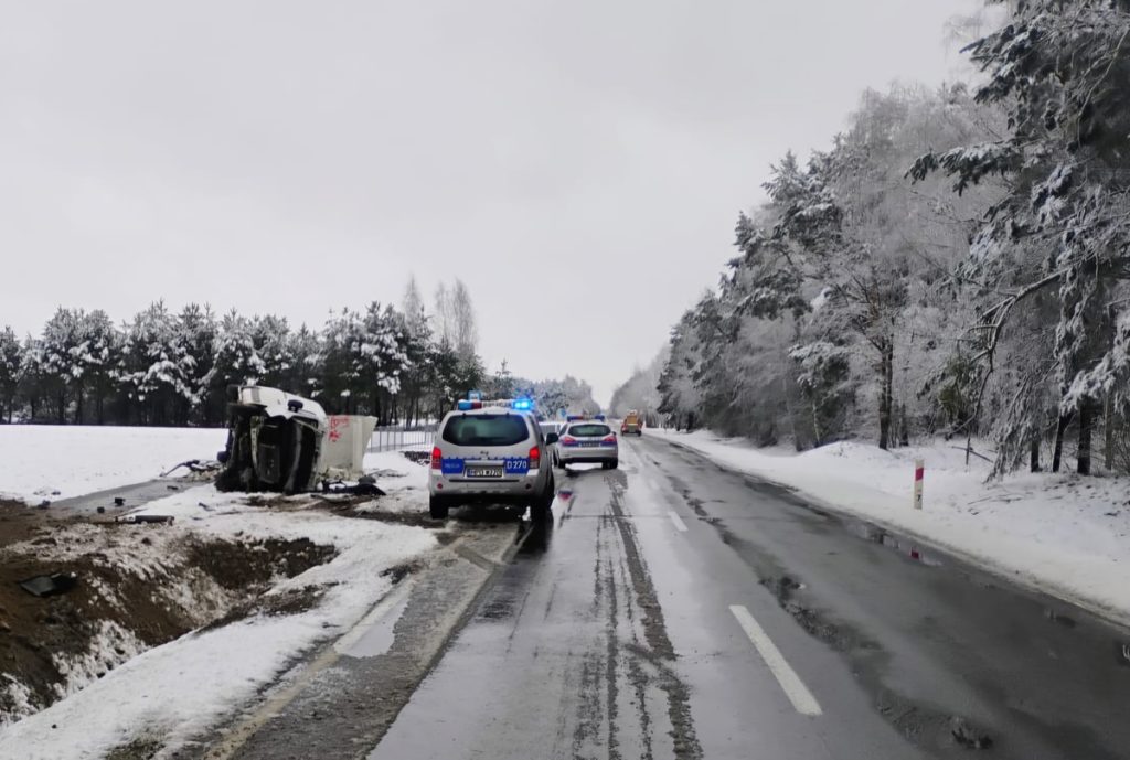 Kierowca Opla nie dostosował prędkości do warunków panujących na drodze, w wyniku czego dachował na drodze wojewódzkiej nr 816. Jechał sam. Na szczęście miał zapięte pasy bezpieczeństwa i nie odniósł obrażeń.