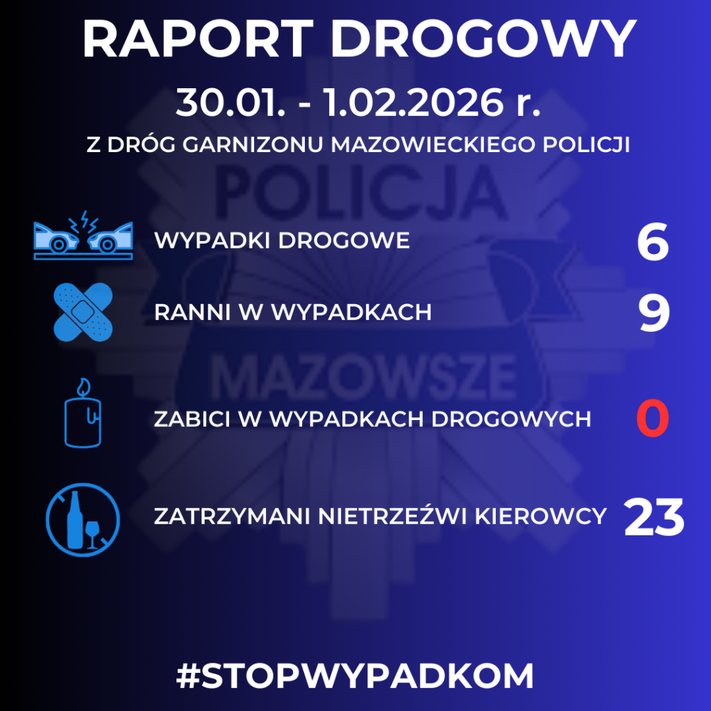 Miniony weekend, tj. od 30 stycznia do 1 lutego br., na drogach garnizonu mazowieckiego upłynął bez wypadków ze skutkiem śmiertelnym. To szczególnie istotna informacja w kontekście trudnych warunków atmosferycznych, które towarzyszyły kierowcom i pieszym.