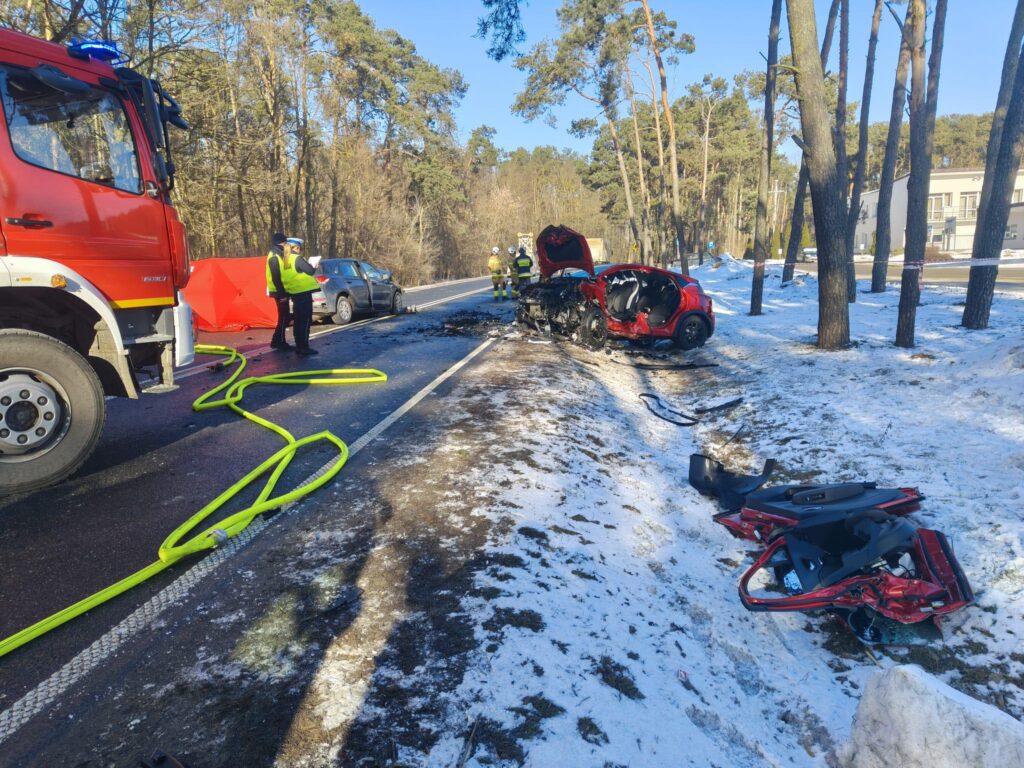 Ze wstępnych ustaleń wynika, że doszło do czołowego zderzenia poza terenem zabudowanym na prostym odcinku drogi.