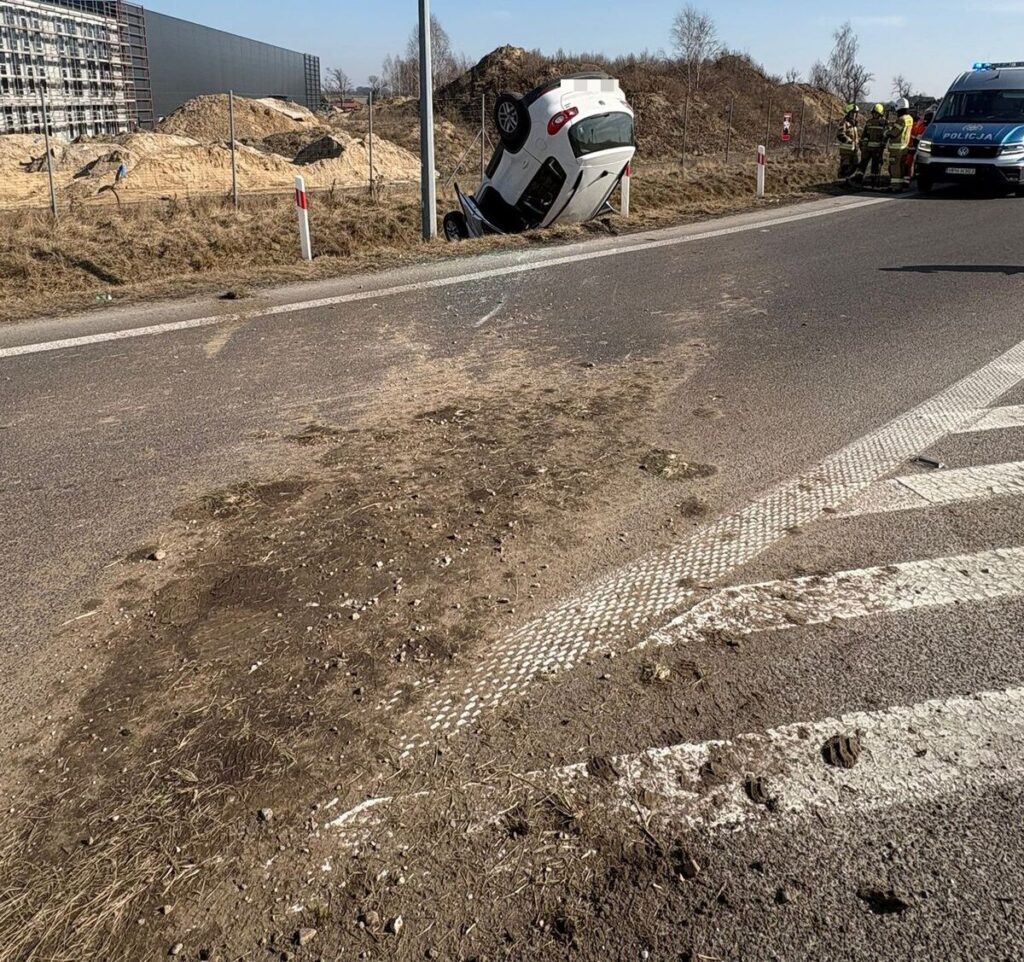 Na zjeździe z trasy S17 w Garwolinie dachował samochód prowadzony przez 19‑latka. Jedna osoba trafiła do szpitala, a policja apeluje o ostrożność — wiosenne warunki na drogach wciąż są zdradliwe.