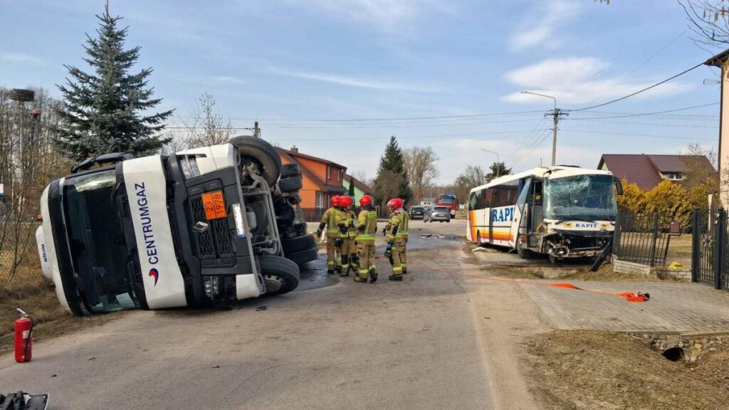 We wtorek (10.03) w miejscowości Posiadały (powiat miński) doszło do zderzenie dwóch pojazdów (cysterny z gazem i autobusu )