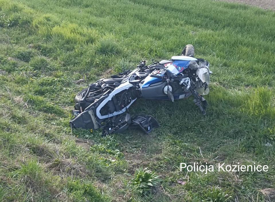 Motocyklista doznał obrażeń ciała i został przetransportowany do szpitala śmigłowcem Lotniczego Pogotowia Ratunkowego.